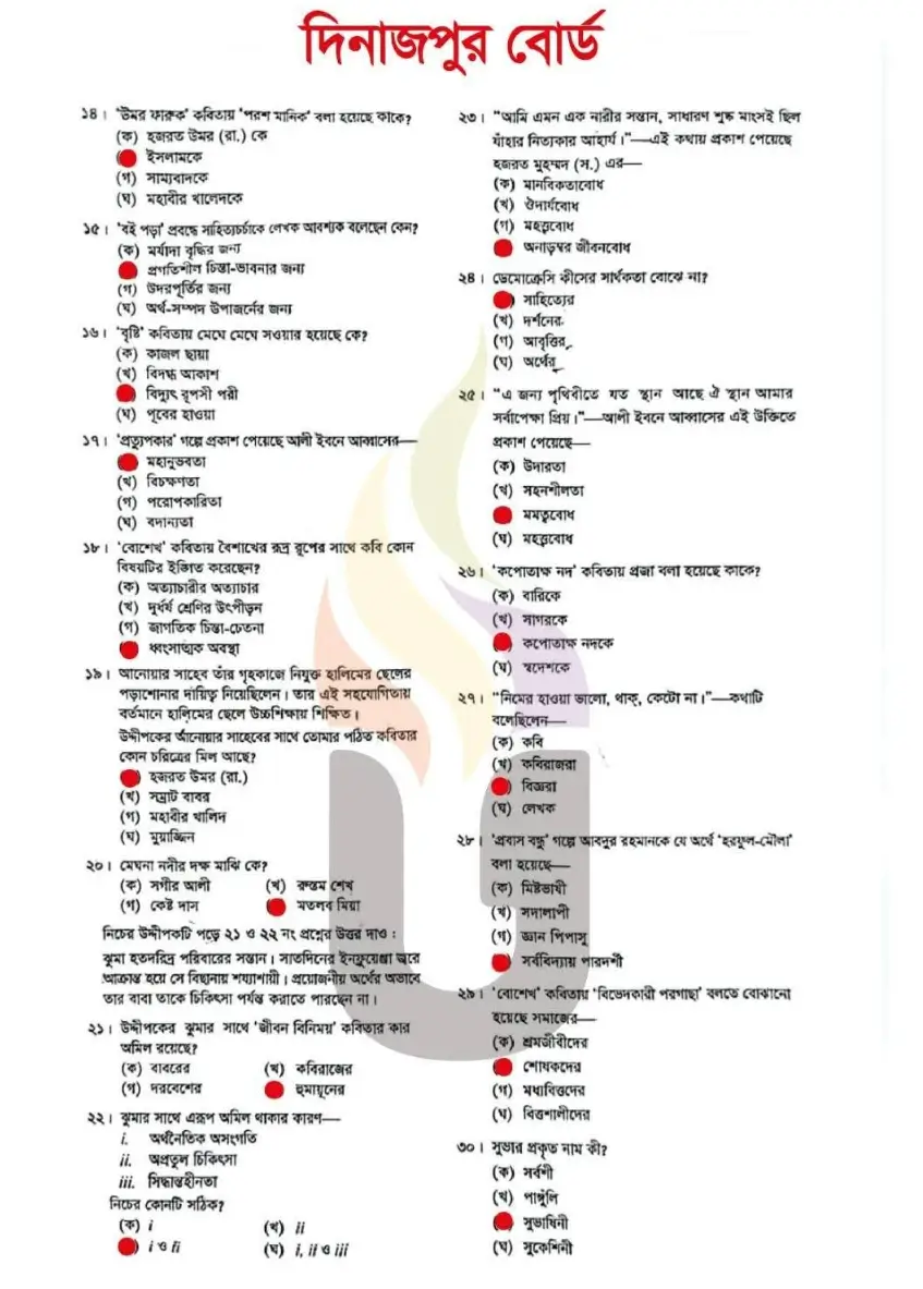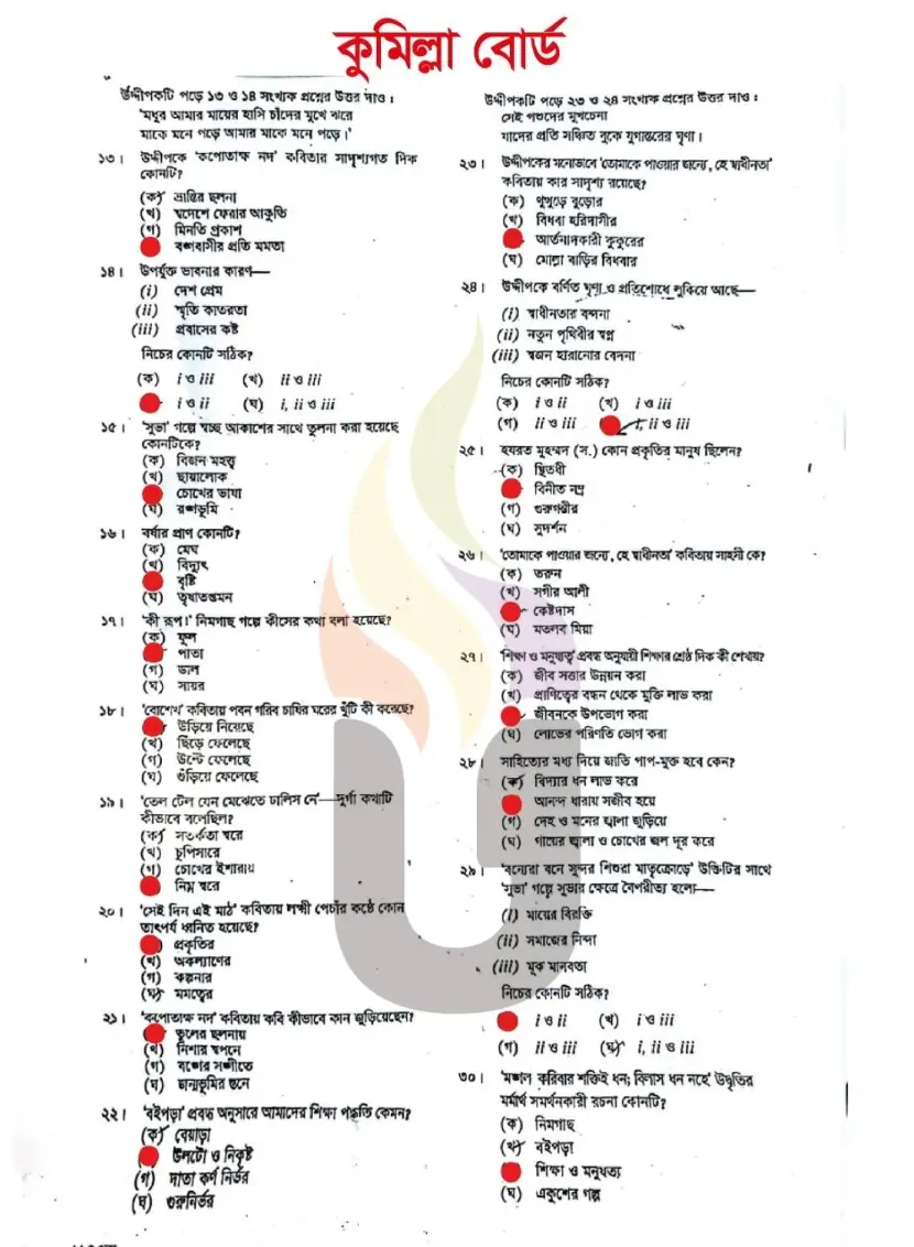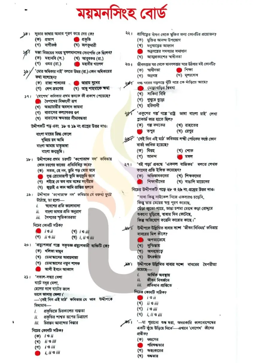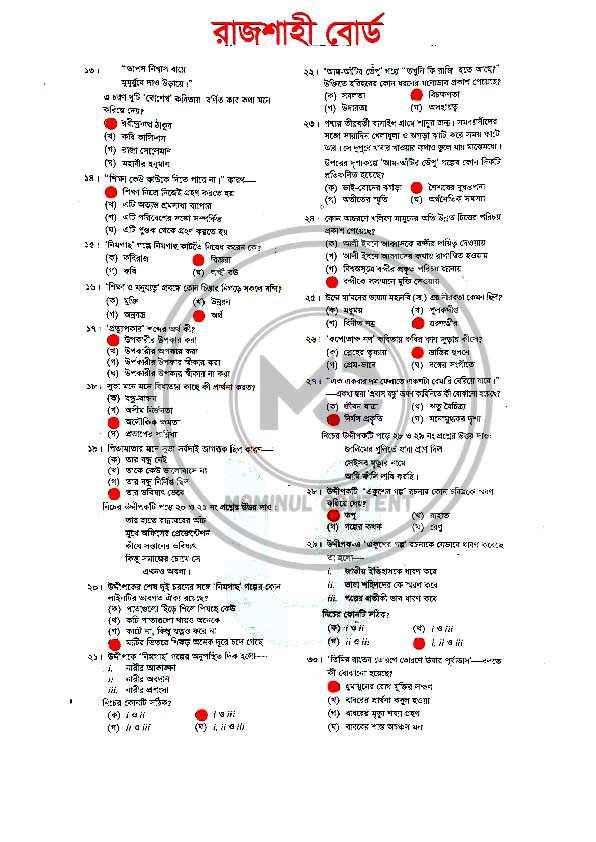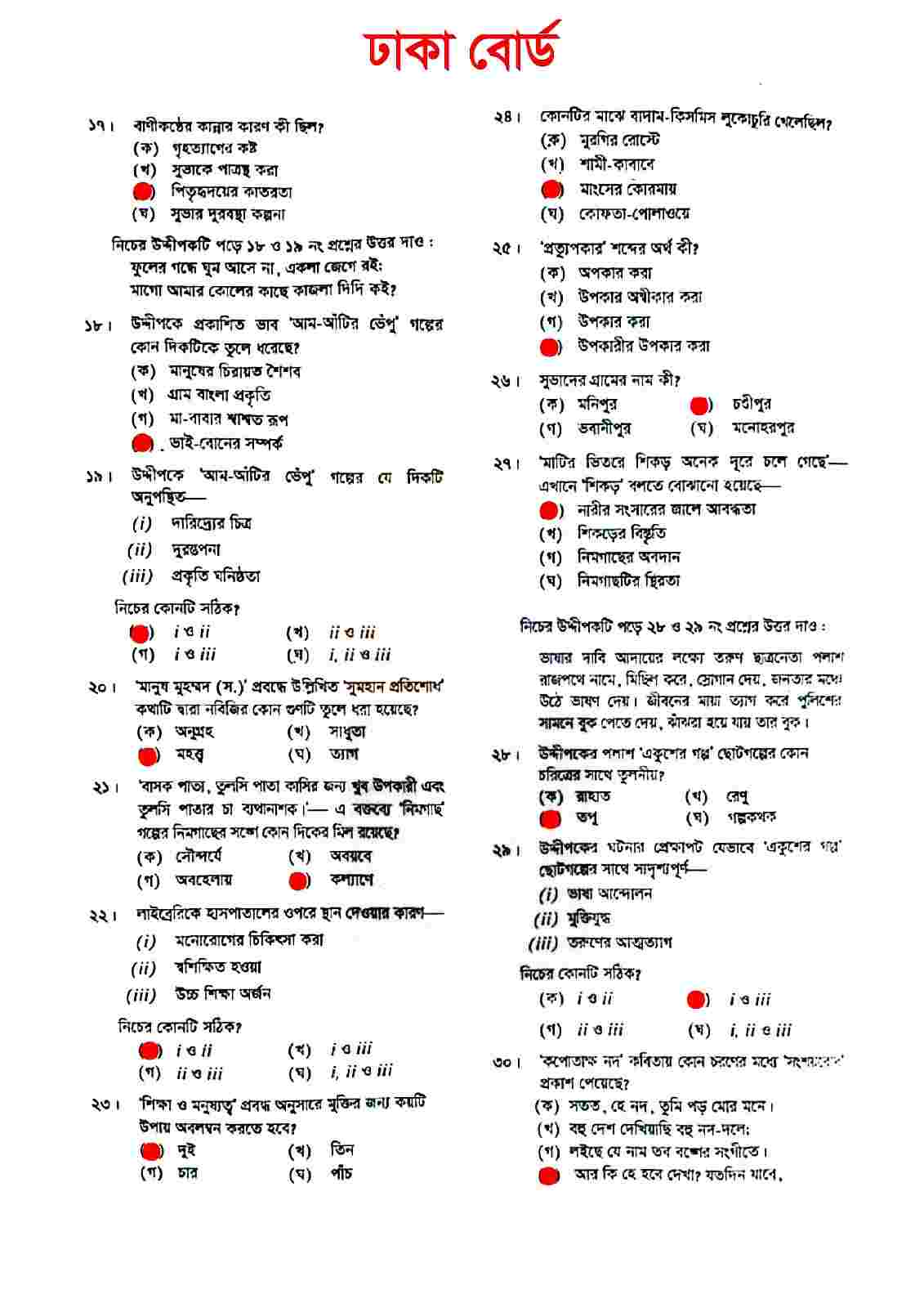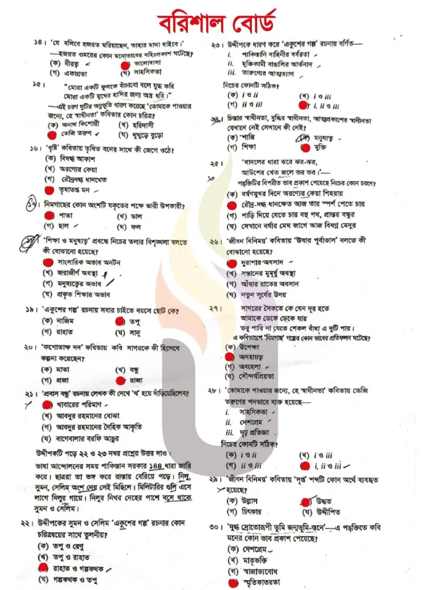 SSC Bangla 1st Paper MCQ Answer Dhaka Board, Barisal and Other Boards